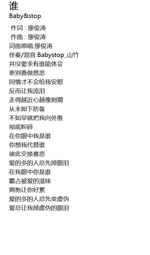 | [00:01.000] | 作曲 : 廖俊涛 |