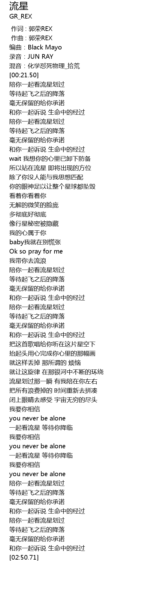 | [01:49.34] | 流星划过那一瞬 有我陪在你左右 |