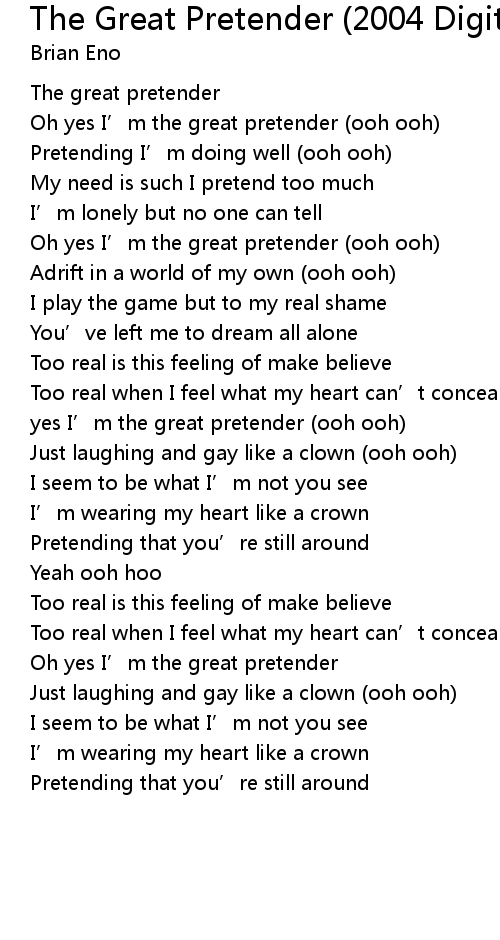 | Oh yes I’m the great pretender (ooh ooh) | |