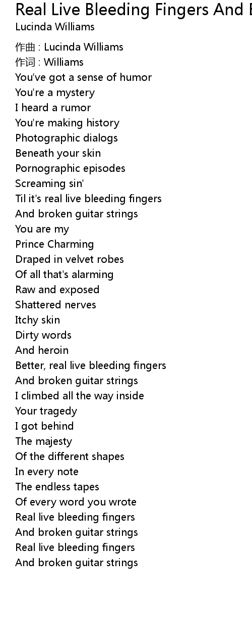 | Song | Real Live Bleeding Fingers And Broken Guitar Strings |