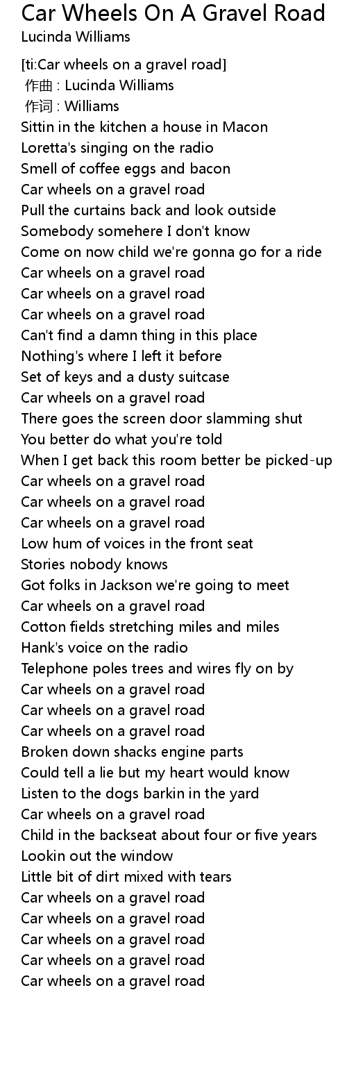 | [00:00.00] | 作曲 : Lucinda Williams |