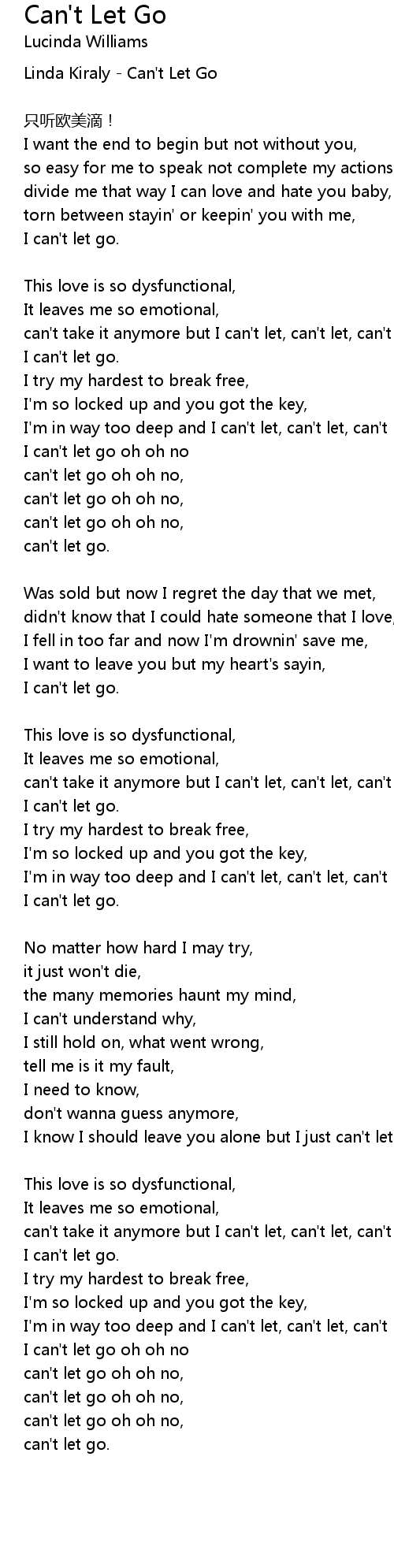 | can't take it anymore but I can't let, can't let, can't let, | |