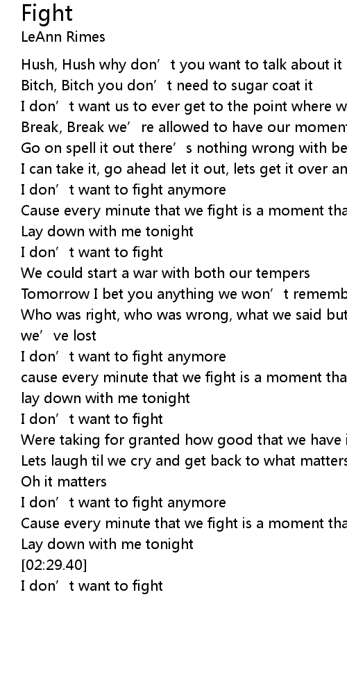 | [01:35.53] | cause every minute that we fight is a moment that we could be loving |