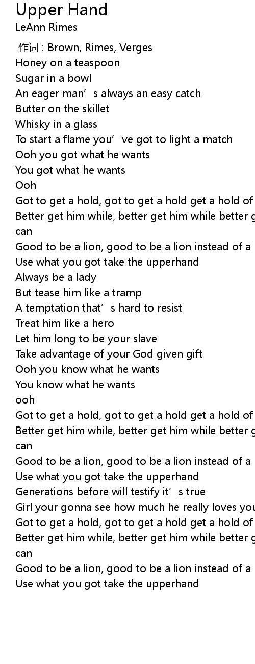 | [02:26.57] | Got to get a hold, got to get a hold get a hold of your man |