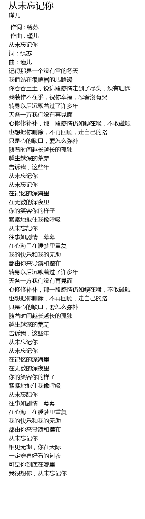 | [01:48.676] | 从未忘记你 |
