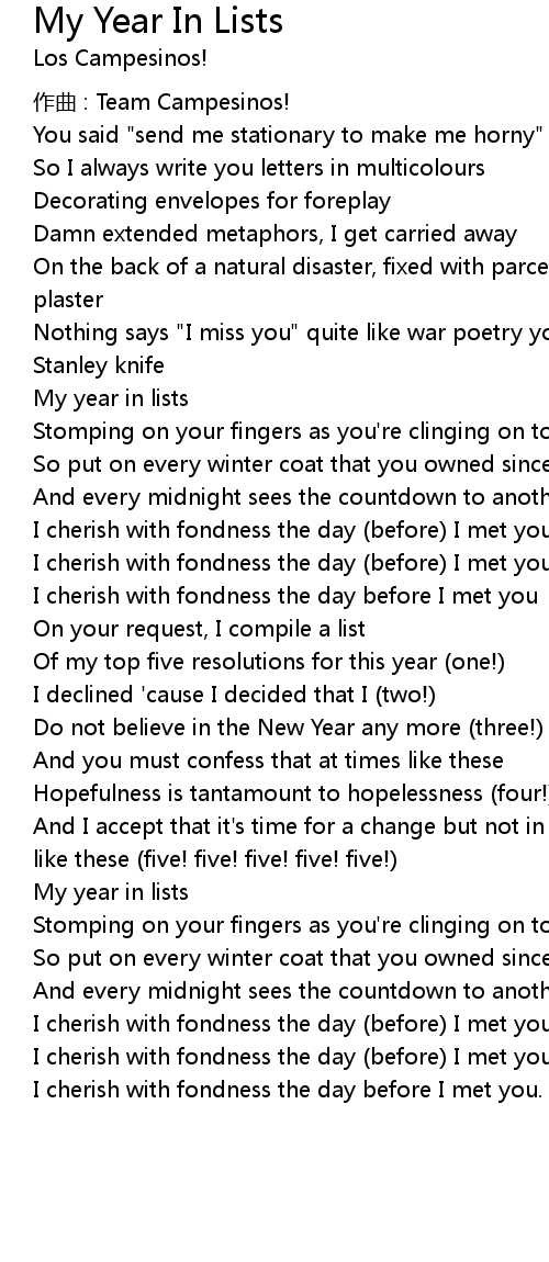 | Song | My Year In Lists |