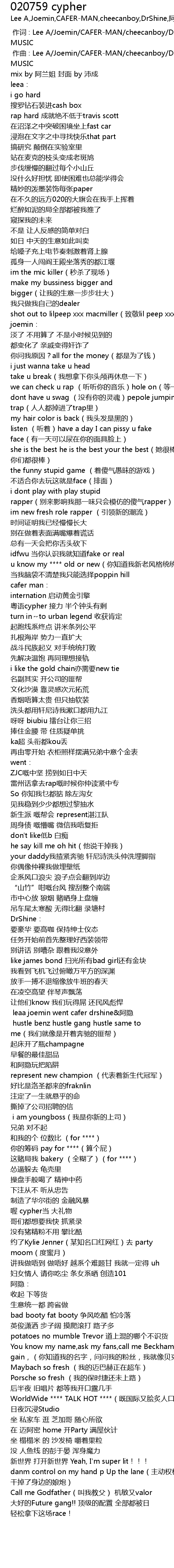 | [02:05.937] | 粤语cypher 接力 半个钟头有剩 |