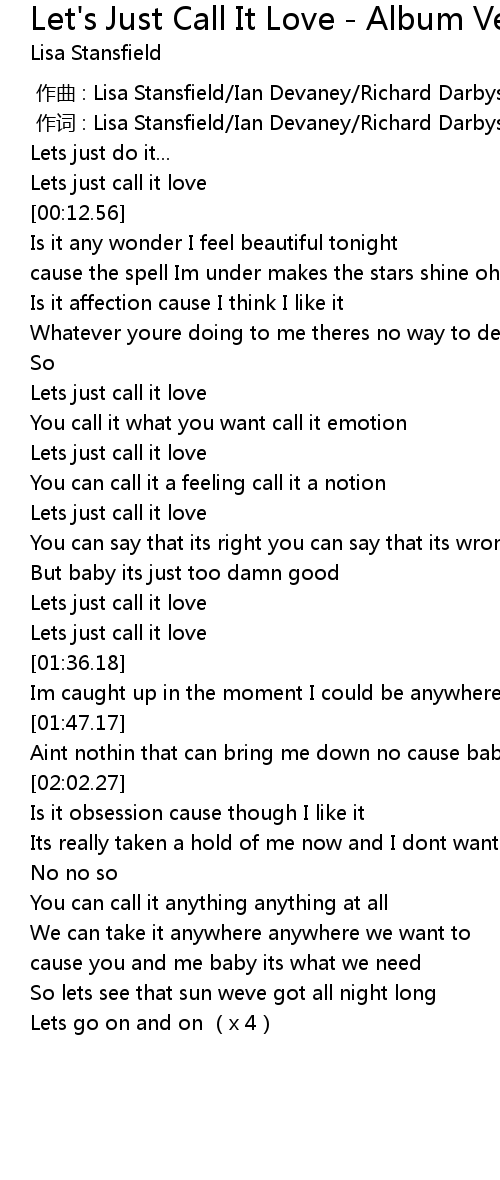 | Song | Let's Just Call It Love - Album Version - Remastered |