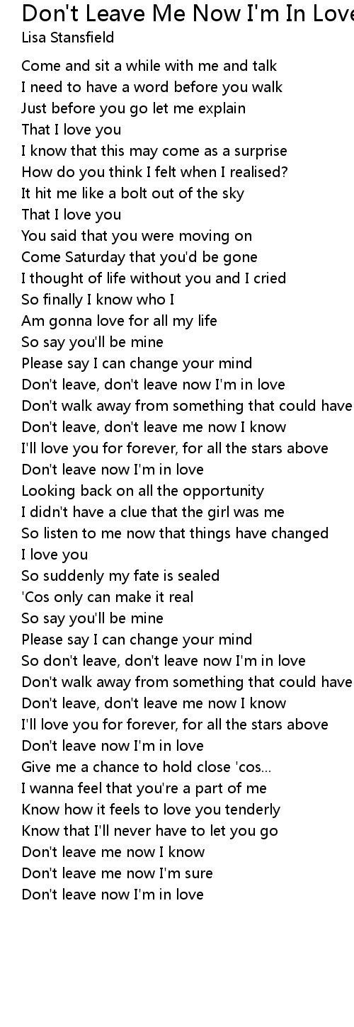 Don't Leave Me Now I'm In Love - Remastered Lyrics