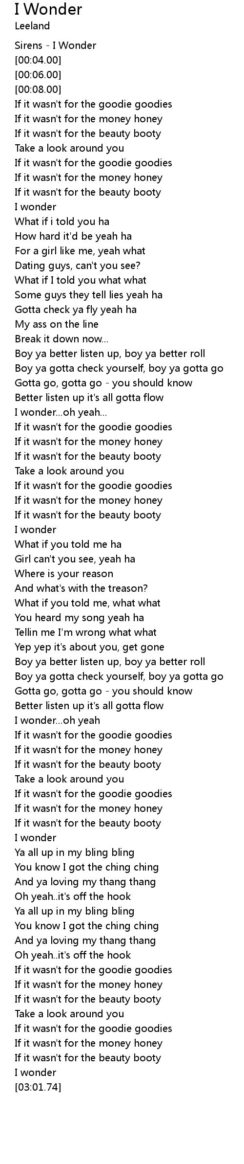 I wonder...oh yeah |