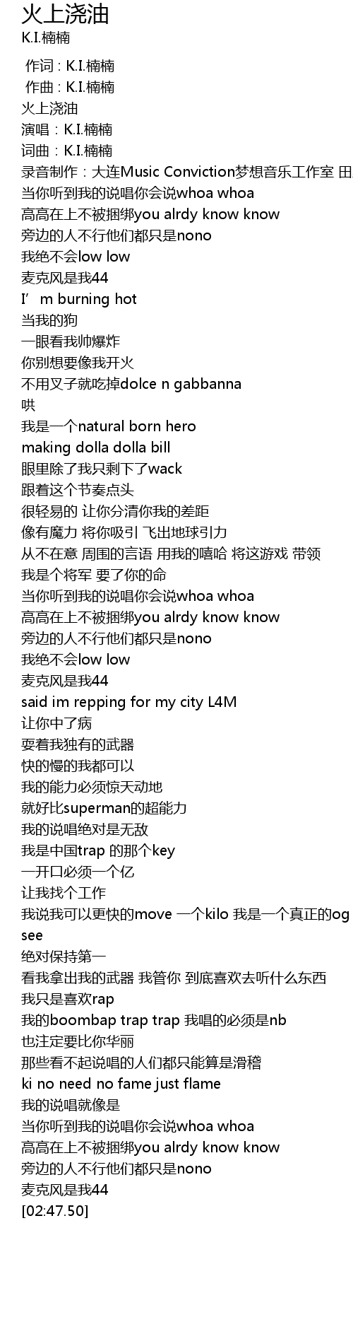 | [00:00.000] | 作词 : K.I.楠楠 |