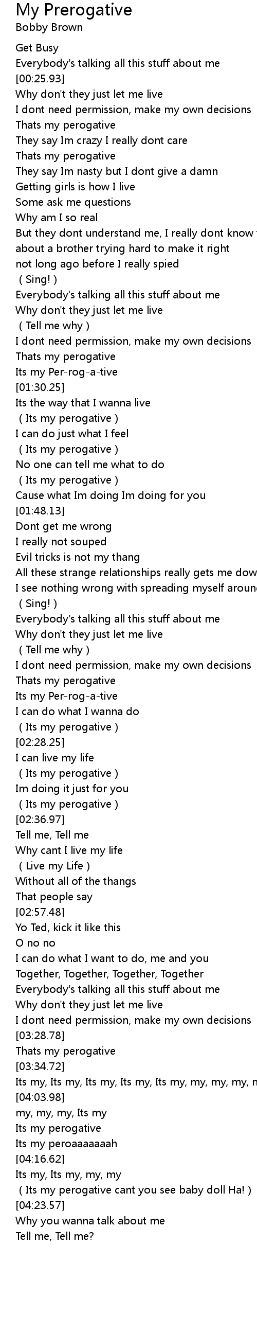 | [01:29.48] | Its my Perrogative |