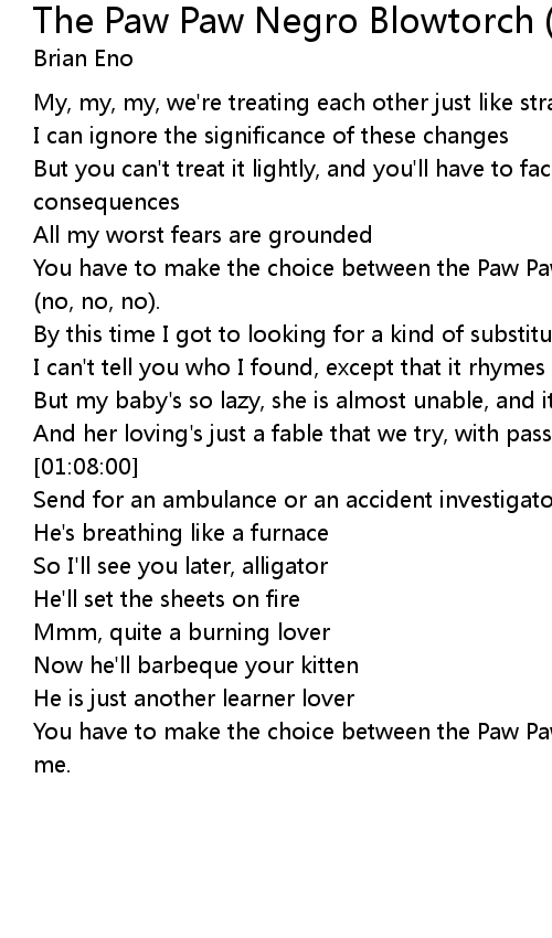 You have to make the choice between the Paw Paw Negro Blowtorch and me (no, no, no). |