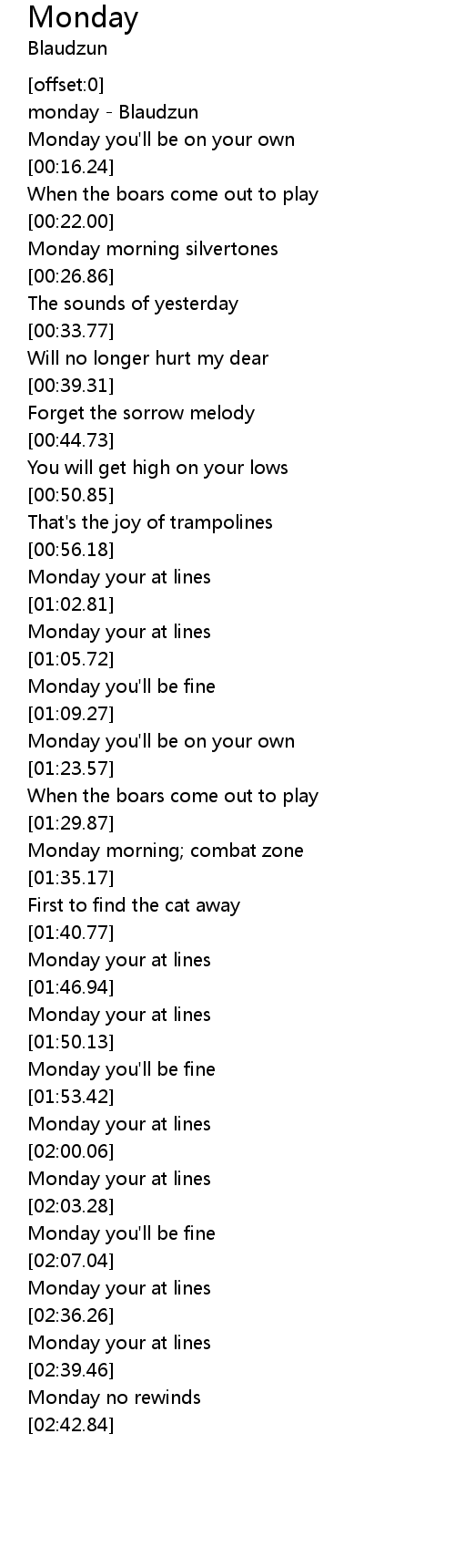 Monday your at lines |