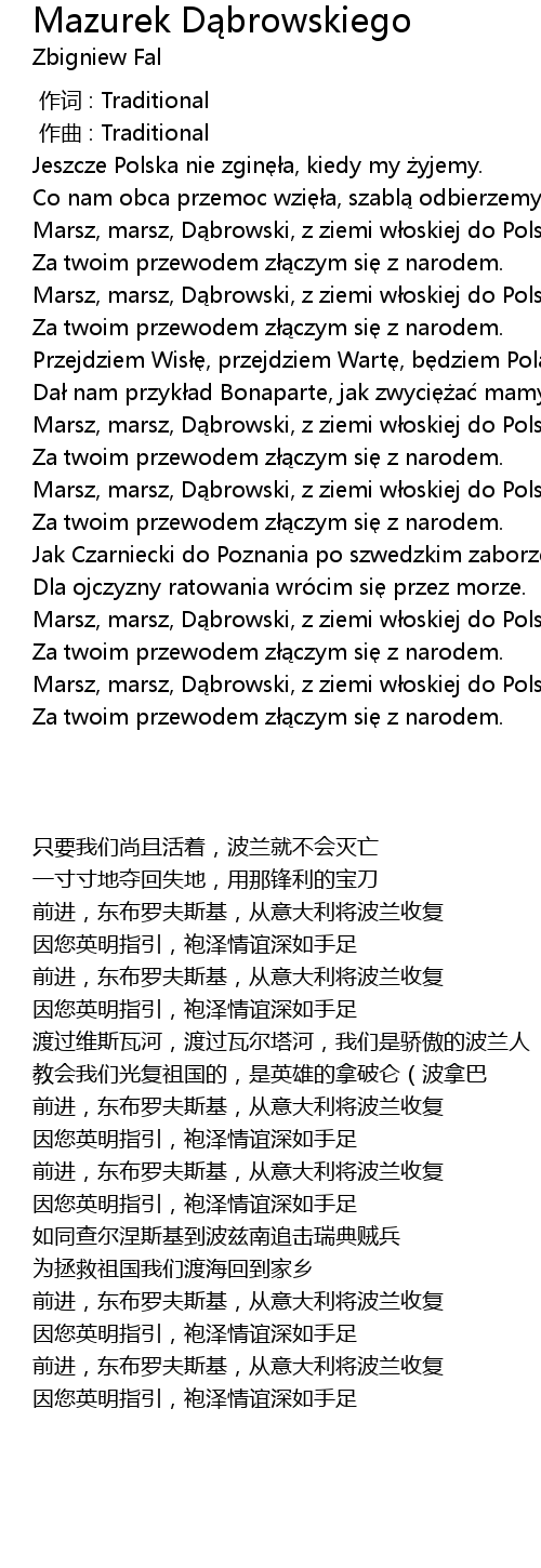 | [00:33.517] | Marsz, marsz, D browski, z ziemi w oskiej do Polski, |