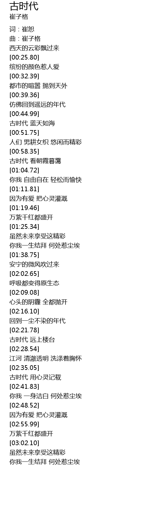| [00:59.17] | 古时代 看朝霞暮霭 |