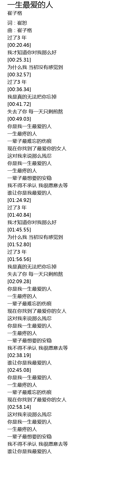 | [03:02.20] | ni shi wo yi sheng zui ai de ren |