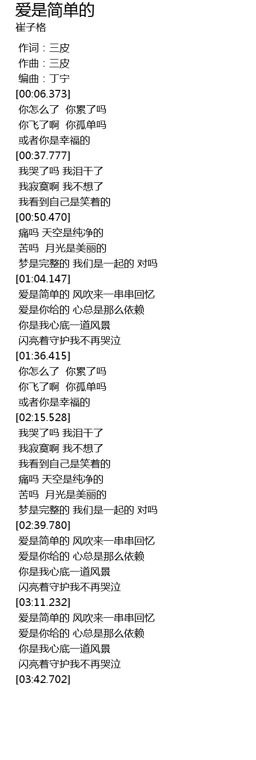 | [02:42.542] | 爱是简单的 风吹来一串串回忆 |