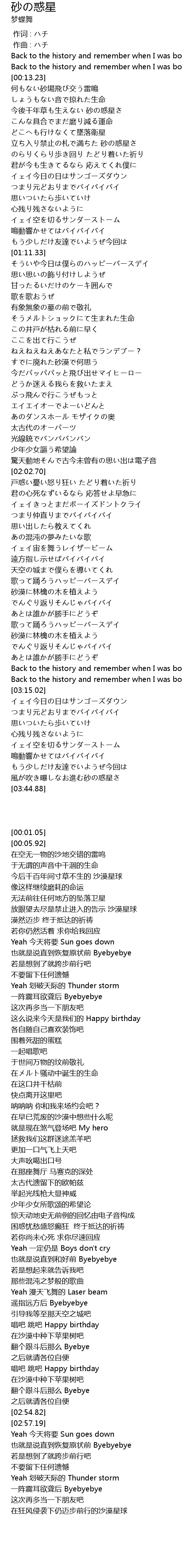 | [00:20.96] | 何もない砂場飛び交う雷鳴 |