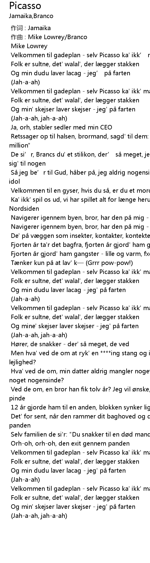 | [01:34.932] | Velkommen til gadeplan selv Picasso ka' ikk' male portr ttet |