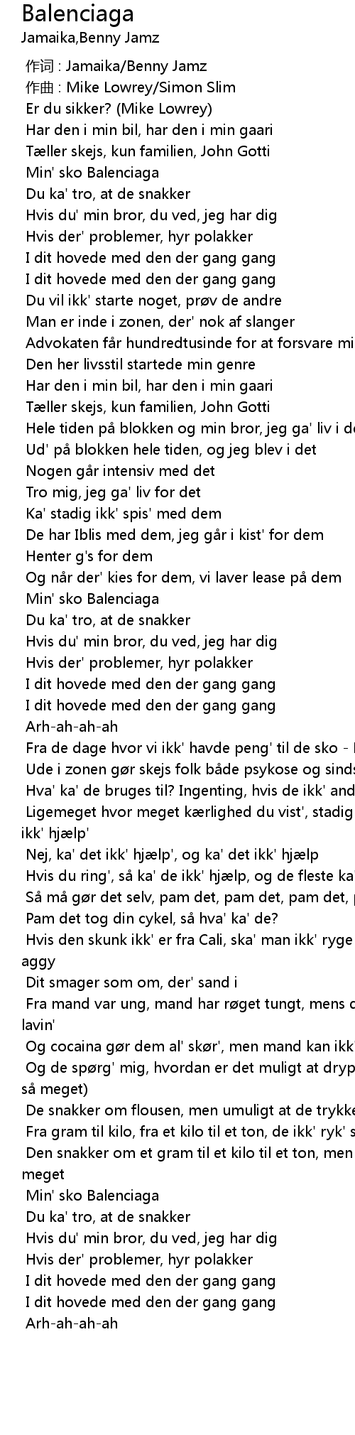 | [01:37.428] | Fra de dage hvor vi ikk' havde peng' til de sko - Balenci' |