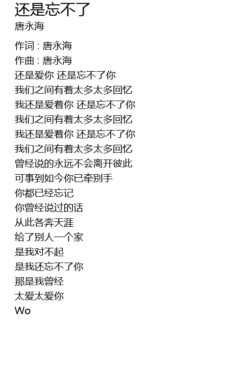| wǒ hái shì ài zhe nǐ hái shì wàng bù liǎo nǐ | |