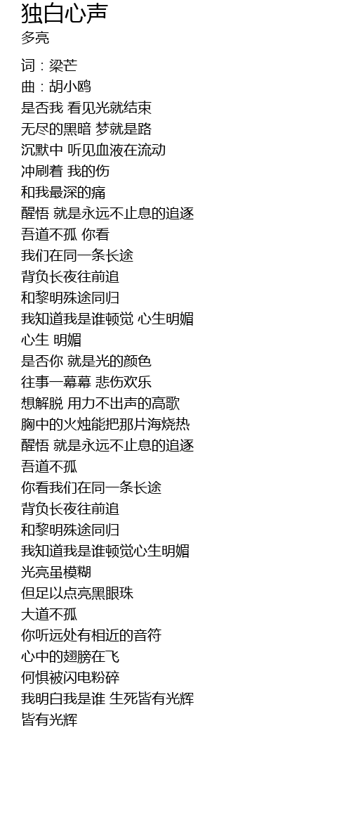 | [01:11.70] | 我知道我是谁顿觉 心生明媚 |