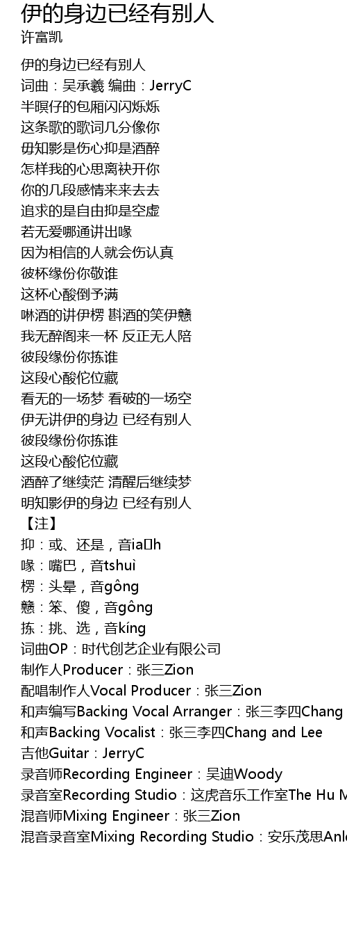 | 和声编写Backing Vocal Arranger:张三李四Chang and Lee | |