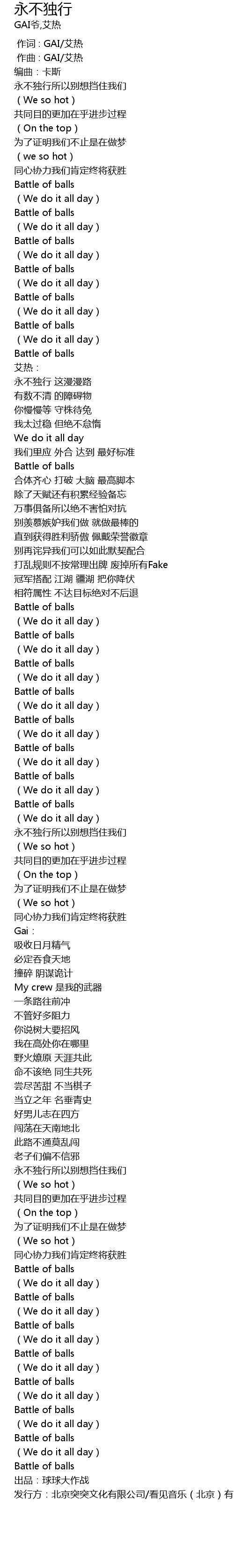 | [00:00.000] | 作词 : GAI/艾热 |