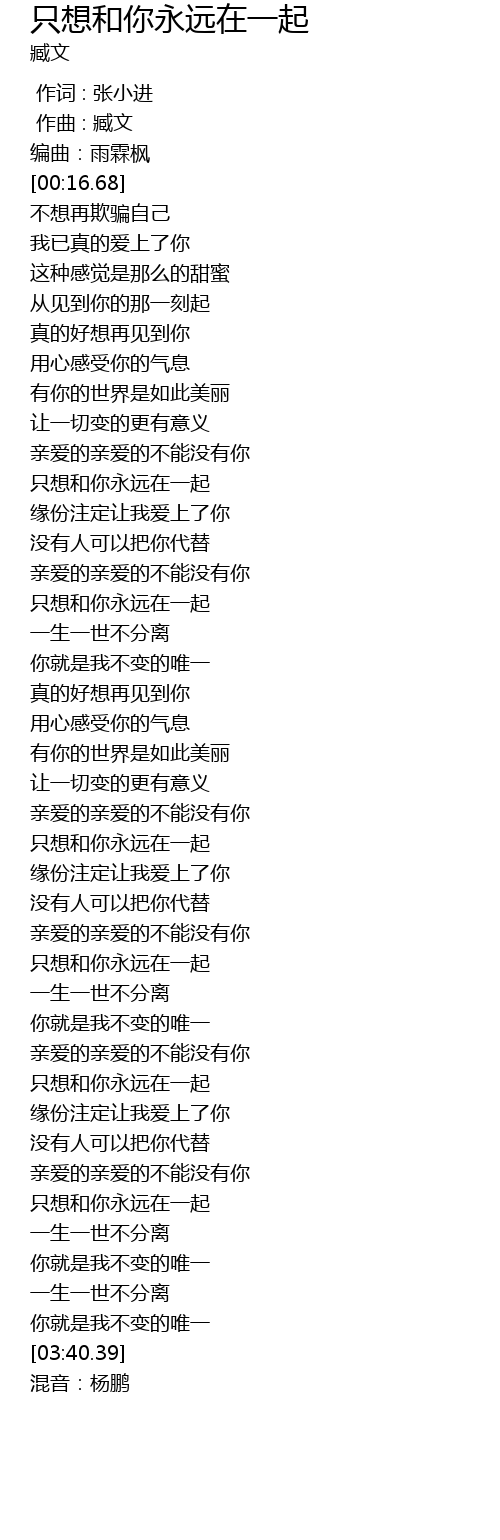 | [03:13.71] | 只想和你永远在一起 |