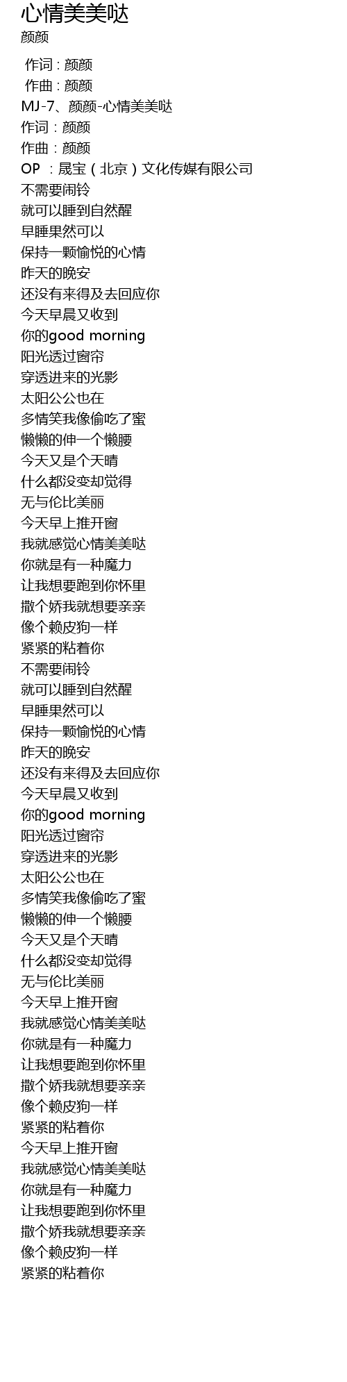 | [00:00.00] | MJ-7、颜颜-心情美美哒 |