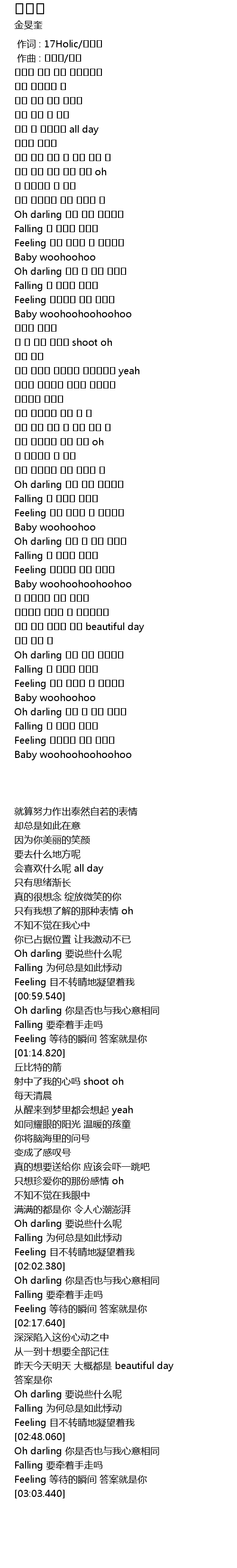 | [01:53.060] | Falling 왜 자꾸만 떨릴까 |