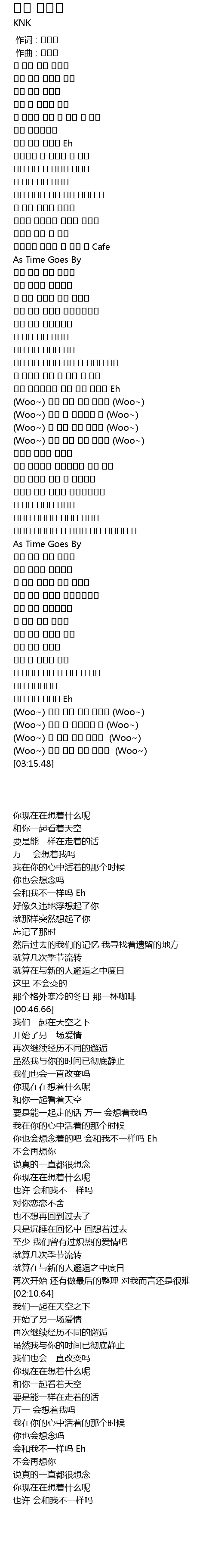 | [03:05.22] | (Woo~) 넌 지금 무슨 생각해 (Woo~) |