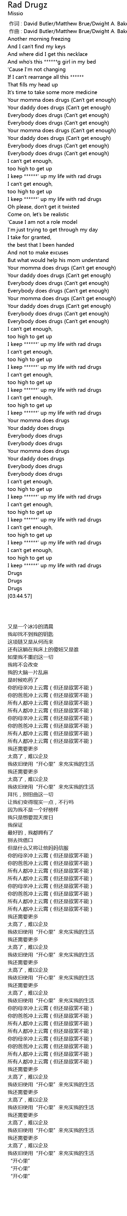 | [02:03.90] | I keep ******' up my life with rad drugs |