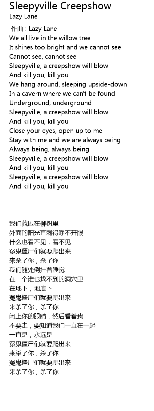 | [03:10.84] | Sleepyville, a creepshow will blow |