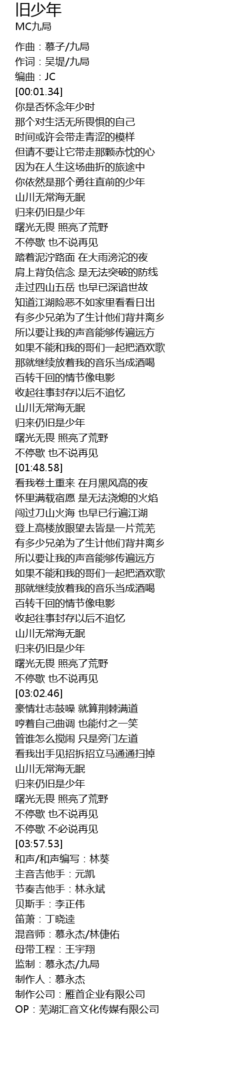 | [01:30.81] | guī lái réng jiù shì shào nián |