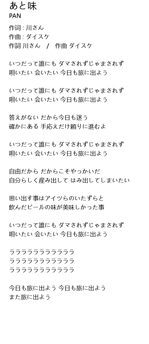 | 唄いたい 会いたい 今日も旅に出よう | |