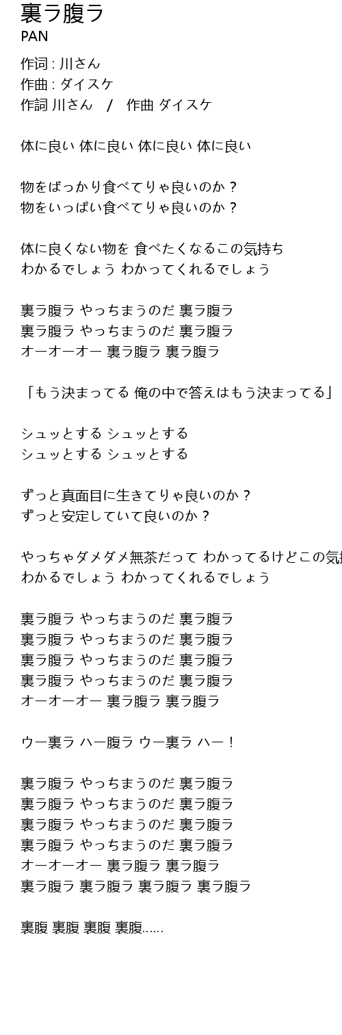 | オーオーオー 裏ラ腹ラ 裏ラ腹ラ | |