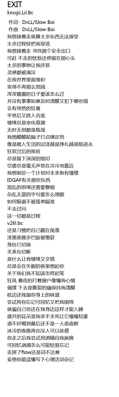 | [00:00.000] | 作词 : DxLL/Slow Boi |