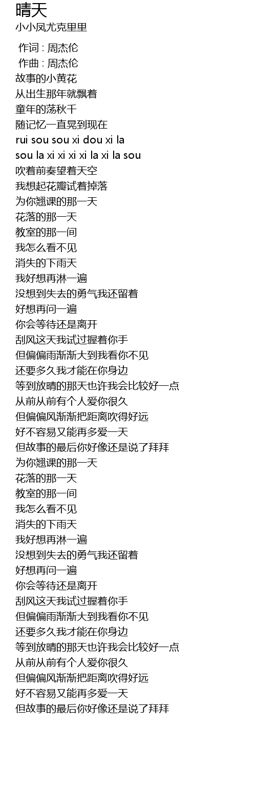 | [00:25.040] | gù shì de xiǎo huáng huā |