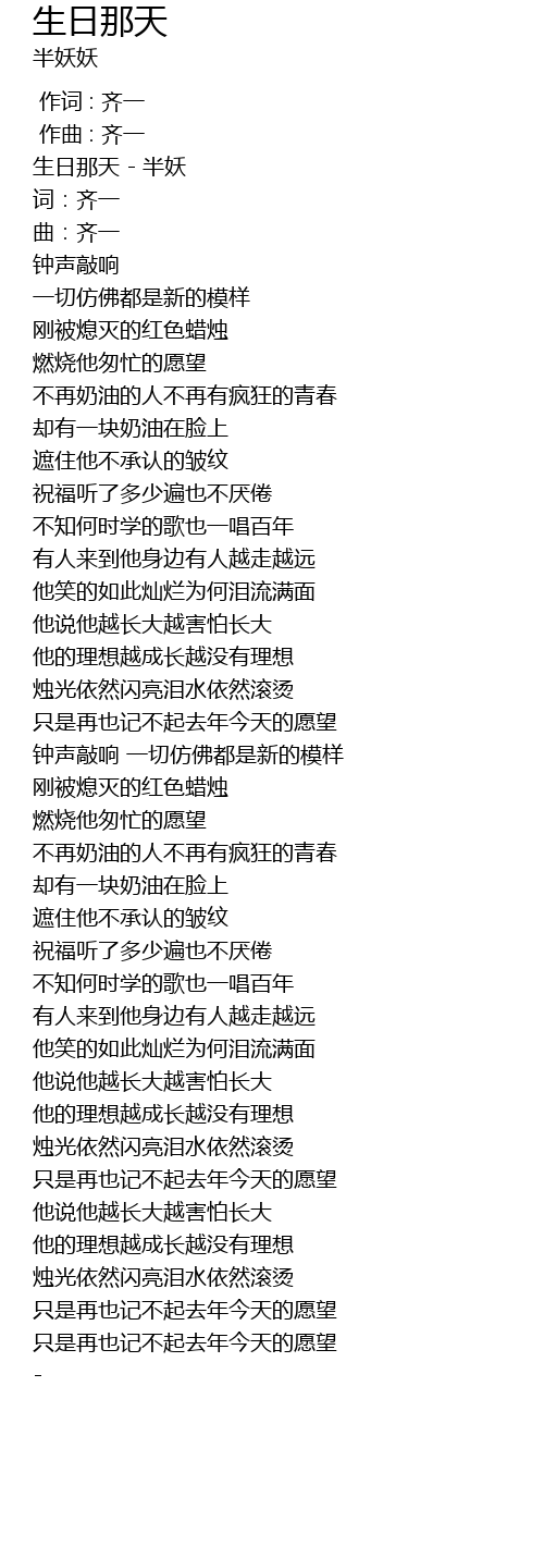 | [03:54.456] | 只是再也记不起去年今天的愿望 |