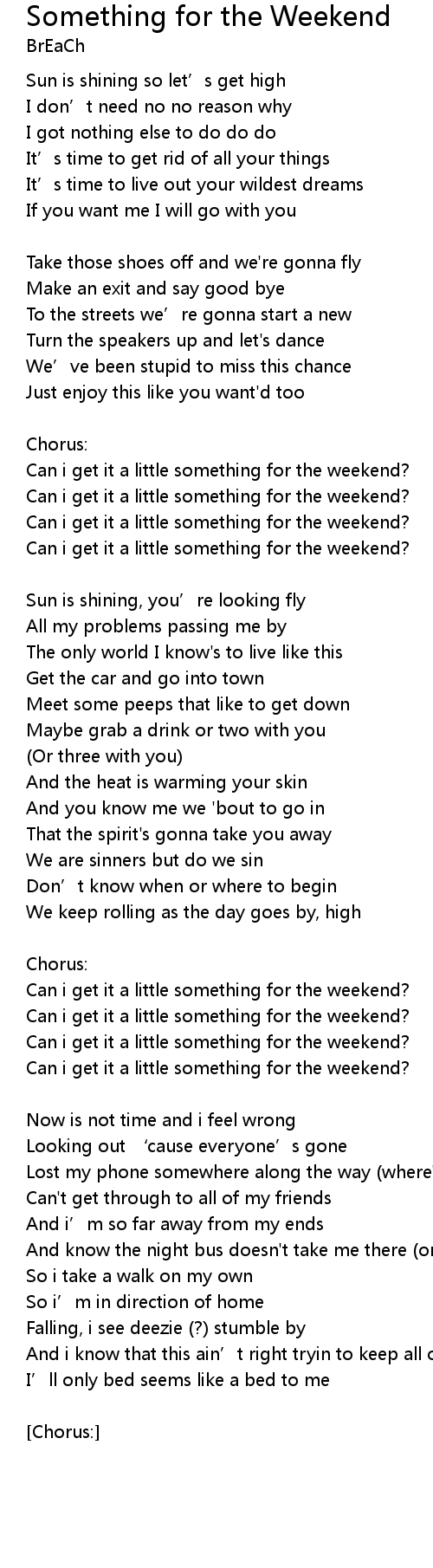 | Song | Something for the Weekend |