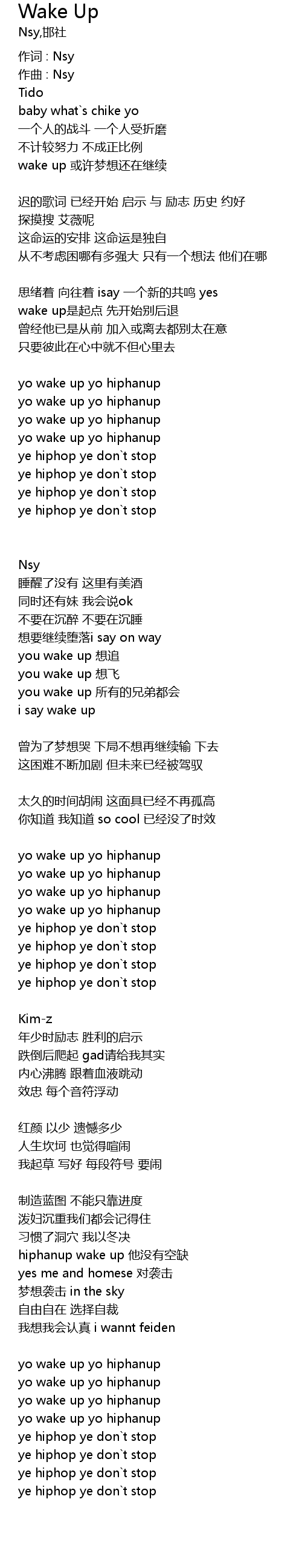 | hiphanup wake up ta mei you kong que | |