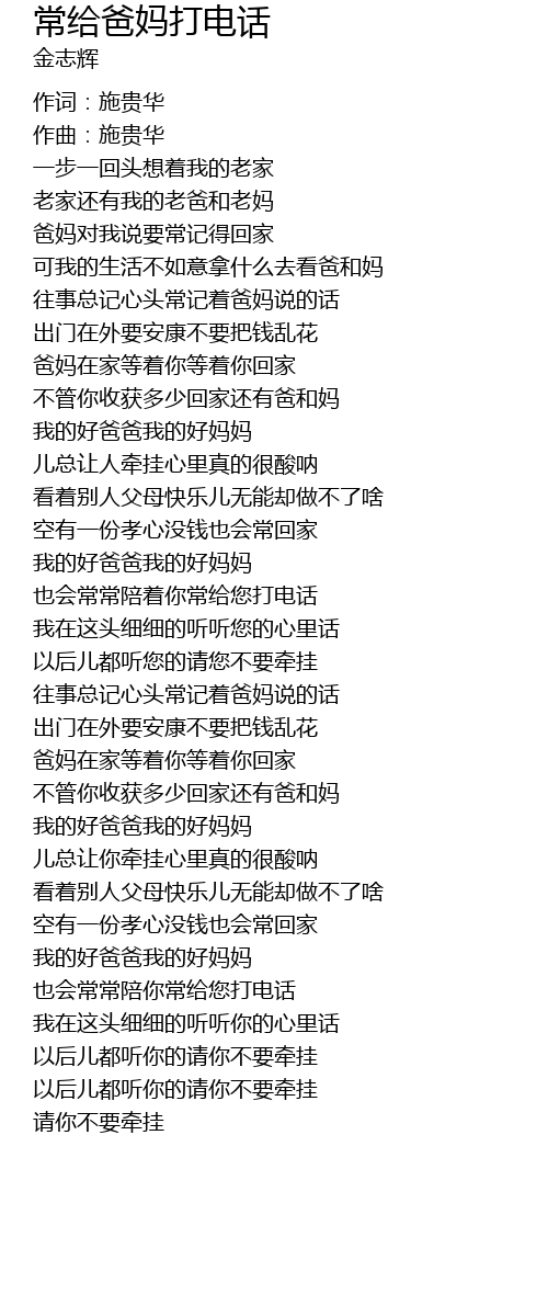| [02:01.00] | 空有一份孝心没钱也会常回家 |