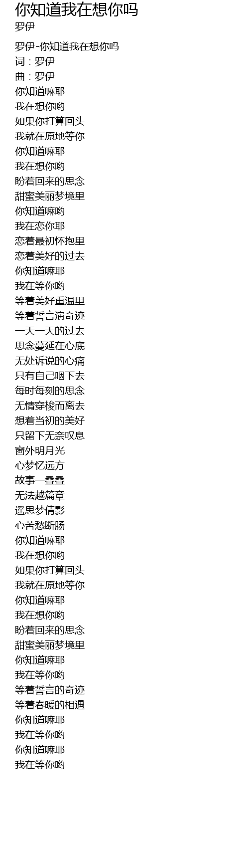 | [00:00.12] | luó yī nǐ zhī dào wǒ zài xiǎng nǐ ma |