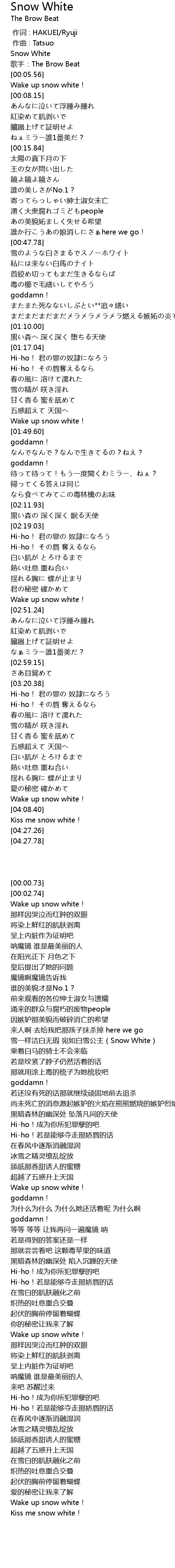 | [04:06.43] | Wake up snow white! |