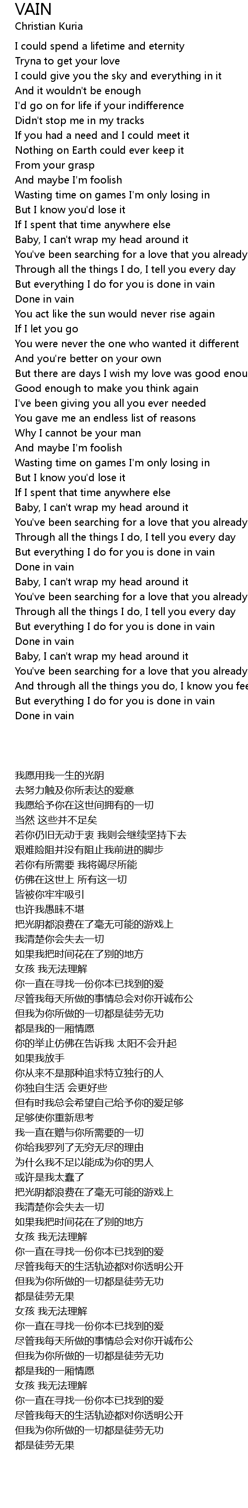 But everything I do for you is done in vain |