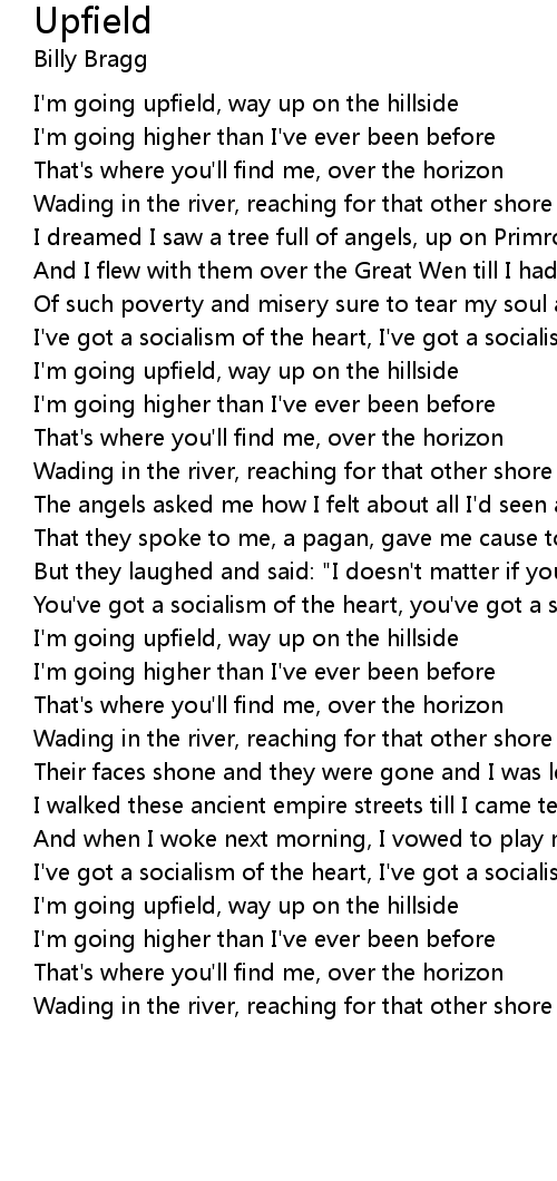 I'm going upfield, way up on the hillside |