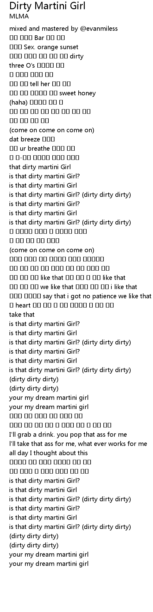 | [01:10.004] | is that dirty martini Girl? (dirty dirty dirty) |