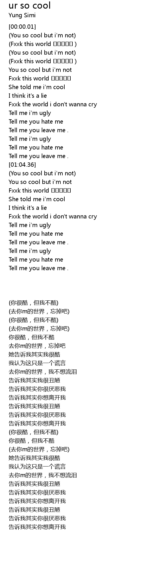 | [00:44.57] | Fxxk the world i don' t wanna cry |